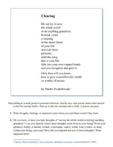 Clearing by Martha Postlethwaite and Storytelling in Small Groups – Sept. 2025 – www.lifesjourney.us -1