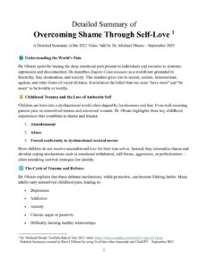 Detailed Summary of Overcoming Shame Through Self Love video by Dr. Michael Obsatz – Sept. 2025