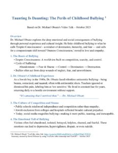 Taunting Is Daunting – The Perils of Childhood Bullying Handout by Dr. Michael Obsatz – October 2025