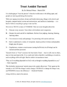 Trust Amidst Turmoil by Dr. Michael Obsatz – March 2026